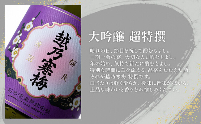 このほかにも、しっとりとした柔らかい飲み口の純米吟醸酒「越乃寒梅 浹(あまね)」や、喉越しが抜群の純米吟醸酒「越乃寒梅 灑(さい)」なども出品しております。