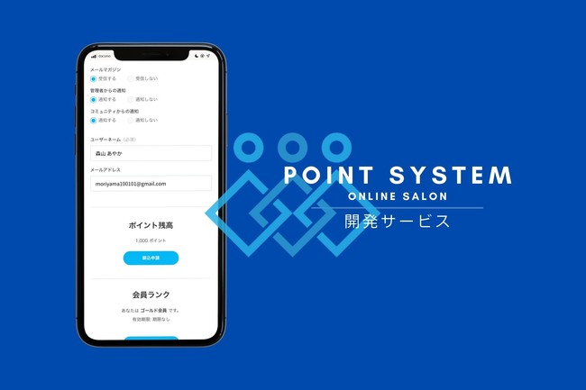 ポイントシステムについて、必要最低限の機能をパッケージングすることで、高クオリティかつ低コストでのオンラインサロン開発制作が可能になります。