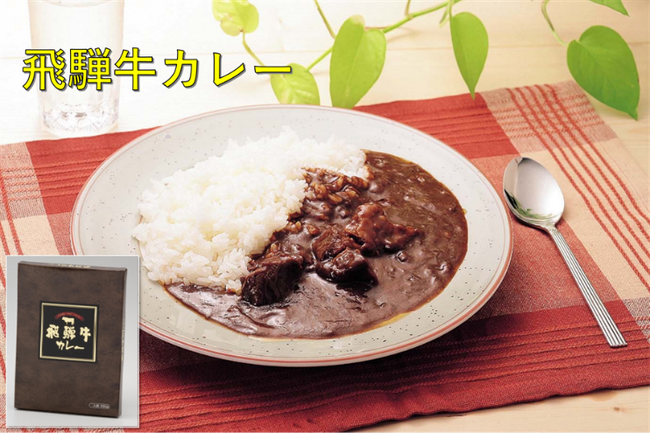 「飛騨牛」を ふんだんに使用した美味しさの逸品、こだわりのプレミアムレトルトカレーです。ごろっと存在感のあるお肉は、舌にとろけ、じっくり煮込んだこだわりのカレーは味わい深い風味が自慢です。