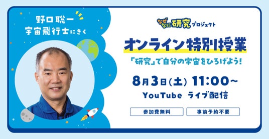 江崎グリコ株式会社は、「ビスコ」が展開する、「ビスコを通じて『食べる』を学ぶ『ビス校』」の活動の一環として、2024年8月3日(土)にYouTubeライブ配信にて、どなたでも視聴できるオンライン特別授業「『研究』で自分の宇宙をひろげよう!」を開講します。特別講師として、宇宙飛行士の野口聡一氏を招き、好きなことの見つけ方・深め方や、宇宙での研究の話、夏休みの自由研究に取り組む子どもたちへのアドバイス等を配信します。