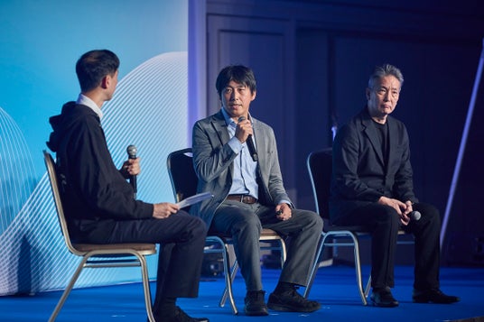 広告事業本部 TVer広告セルフサーブ推進PJTリーダー 東岳彦(写真左)、株式会社unerry サービス企画開発部 General Manager 一枝悟史氏(写真中央)、株式会社Global Japan Corporation 執行役員/営業部 鈴久名範昭氏(写真右)