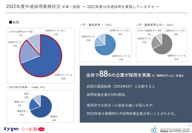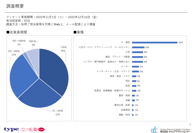 ひとつ上を目指す人のキャリア転職サイト『type』、正社員で長く働きたい女性のための転職サイト『女の転職type』は中途採用担当者様を対象に2022年11月1日(火)~2022年12月16日(金)間に中途採用活動に関するアンケートを実施。有効回答数95社の回答レポートをリリースしました。
