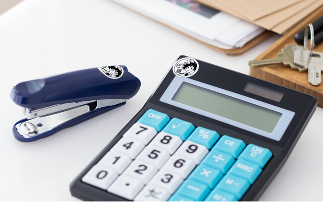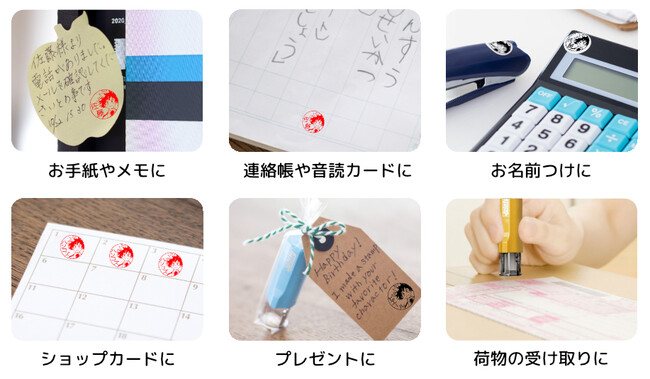 ハンコを押してお名前つけシールがつくれる耐水性の丸型シール「ぺたまる」(別売)を使えば、好きなキャラクターを自分の持ちものの「しるし」とすることもできます。