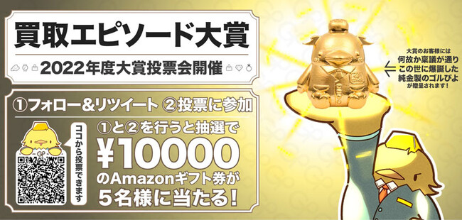 エピソード代として必ず買取額に1000円を上乗せさせてい頂き、各SNSやウェブページにて発表しております。ウェブページ、SNSの反応を集計しランキングを発表、毎月のMVPのお客様にGP特製24金ミニバーをプレゼントしてきましたが、今回は2022年度のMVPエピソードの中から年間大賞を決定いたしました。
