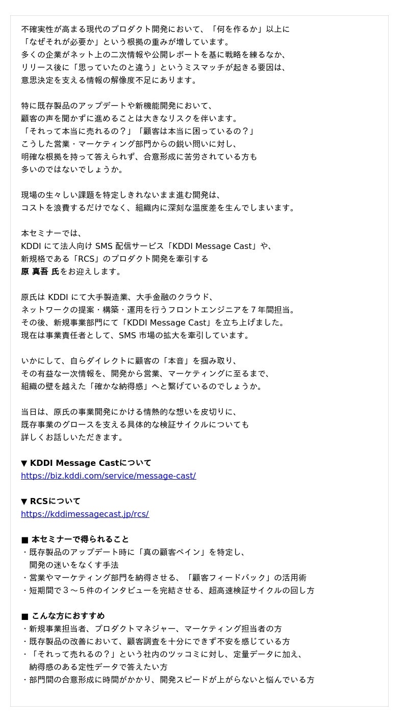 タイトル:KDDI のプロダクト開発に学ぶ!