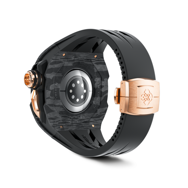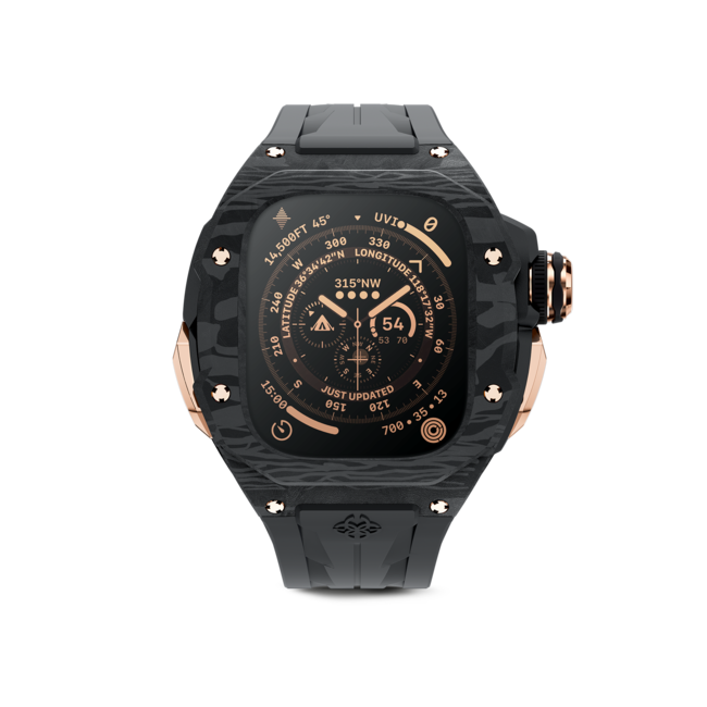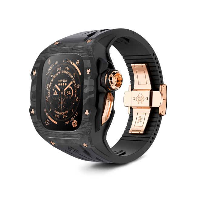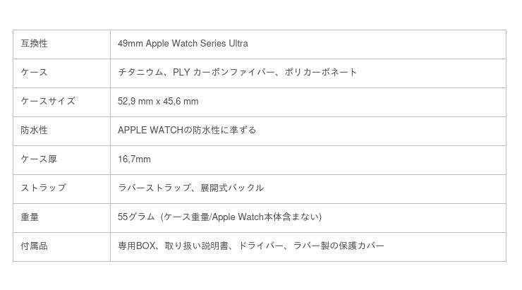 アップルウォッチウルトラの洗練されたモダンな外観に合わせデザインされた、50を超える精密パーツの組み合わせから出来ており、操作性を損なう事なくカーボンファイバーの特徴的な外観と、高い耐久力を両立しています。