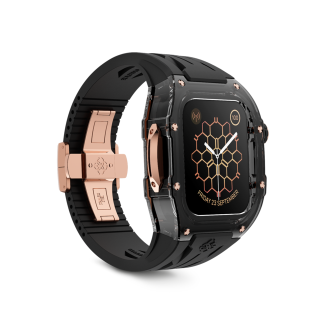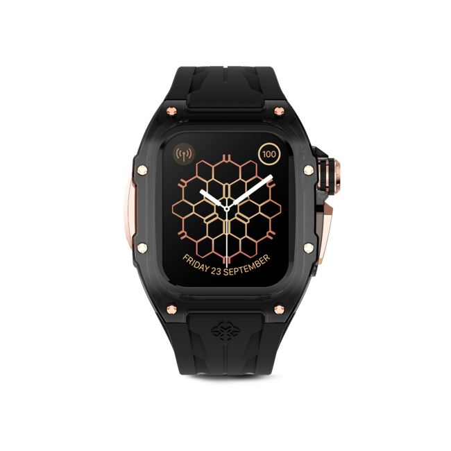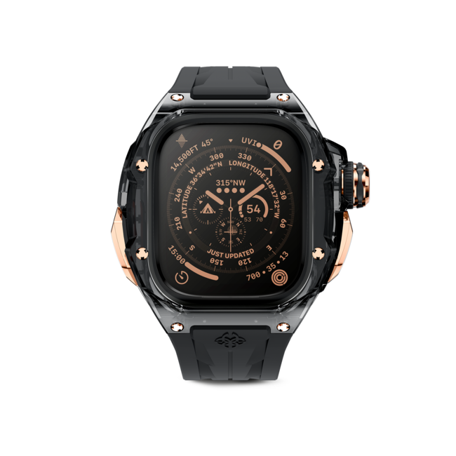 ブラック×ローズゴールドの組み合わせは、ブランドのメインカラーリングとしても人気の高い組み合わせです。ラインナップは、アップルウォッチ45MMと49MMウルトラに対応した2モデル。