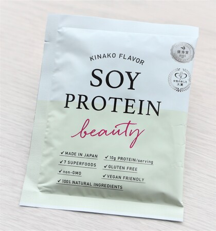 大豆ベースに人気のモリンガやアサイーを含んだ7つのスーパーフードを配合し、普段の食生活だけでは不足しがちな栄養素をバランスよく摂ることができます。きな粉風味で飲みやすく、女性に嬉しい冷え対策素材も入っているので体も温まります。