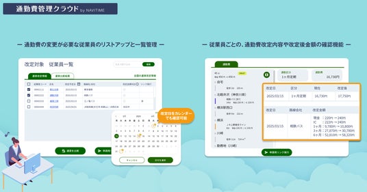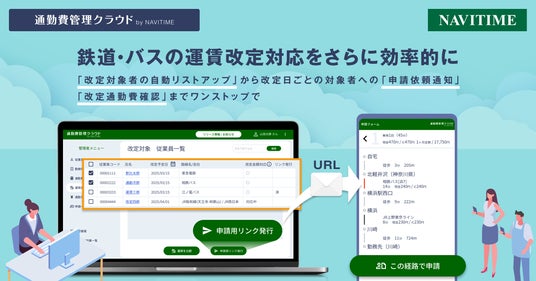 株式会社ナビタイムジャパン(代表取締役社長:大西啓介、本社:東京都港区)は、2025年3月18日(火)より、従業員の正確な通勤費をシステム管理できるWebサービス『通勤費管理クラウド by NAVITIME』にて、鉄道会社やバス会社の運賃改定時の人事・労務担当者の通勤費改定対応をサポートする機能を大幅にアップデートいたします。