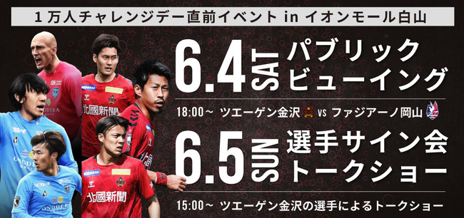 6月11日(土)開催の横浜FC戦にて3年ぶりに実施する「1万人チャレンジデー」に向けて、6月4日(土)・5日(日)イオンモール白山にて、プレイベントを開催することが決定しましたのでお知らせいたします。