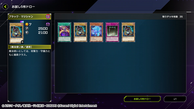 お試しドローで手札に来るカードをチェックすることが可能です。
