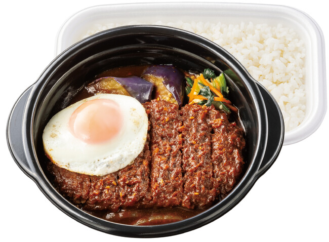 付け合わせにとろっとした食感が魅力の「揚げなす」、定番人気の「目玉焼き」、さっぱりと食べられる「小松菜の和え物」を加え、飽きのこない弁当に仕立てました。