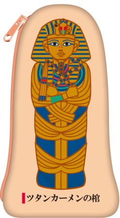 「セクメト」、「メジェド(喜び)」の文房具などが入るポーチ。裏面はカラフルなヒエログリフ柄。