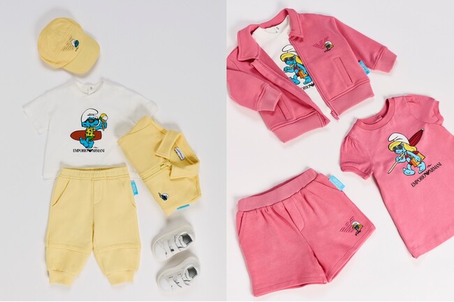 世界中で愛されているアニメキャラクター・森の妖精スマーフが、エンポリオ アルマーニのジュニアラインの新作として登場します。陽気なスマーフプリントが愛らしいコレクションです。