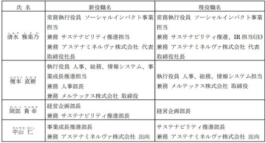アステナホールディングス株式会社(本社:東京都中央区、代表取締役社長:瀬戸口 智、証券コード:8095)は、2025年11月26日開催の取締役会において、下記のとおり組織変更及び人事異動について決議いたしましたので、お知らせいたします。