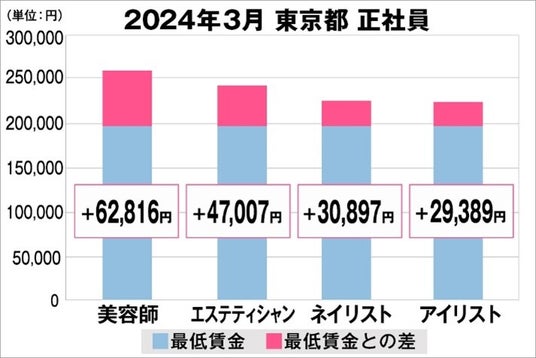東京都の美容業界における採用時給料に関する調査結果 (正社員)2024年3月美プロ調べ