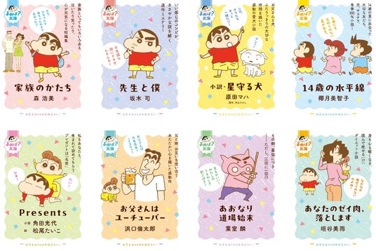 双葉文庫の人気作品8タイトルが、『クレヨンしんちゃん』のお馴染みのキャラクターたちのオリジナルカバーで登場です。