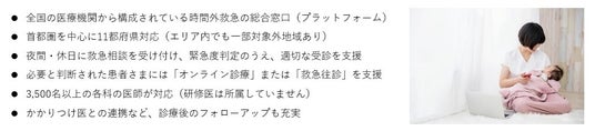 調査では約80% (※2)の家庭がかかりつけ医を持っていると答えましたが、年中無休で夜間の診療が可能なかかりつけ医はそのうちの4%に過ぎませんでした。相談もできない、自己判断もできないゆえに医療サービスの利用を控えているという現状があり、間口の広い相談窓口の整備が求められていると考えています。