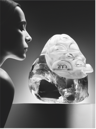 タイムレスでアバンギャルドな彼女の造形は、手や耳、首などのジュエリーとして、あるいは彫刻として、サイズに関係なく魅力的であるという特殊性を持ち、Charlotte は作品を通して、時に物質性を顧慮することなく、次元を超えて遊び心を加える。