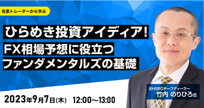 株式会社外為どっとコム(本社:東京都港区、代表取締役社長:竹内 淳)は、9月7日(木)12時より、当社主催の無料オンラインセミナー『ひらめき投資アイディア!FX相場予想に役立つファンダメンタルズの基礎』を開催することとなりましたので、お知らせいたします。
