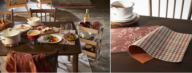 あつあつの料理を引き立てる、明るいチェック柄やほっこりかわいい北欧柄のランチョンマット。PVCマットはクッション性があるので、食器やカトラリーを置く音を気にせず食事と会話が楽しめます。