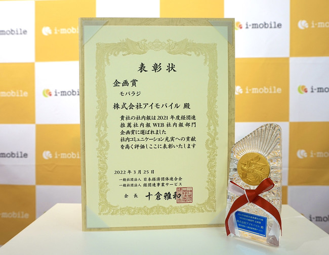 株式会社アイモバイル(本社:東京都渋谷区、代表取締役社長:野口哲也、東証プライム市場、以下「アイモバイル」、 https://www.i-mobile.co.jp/ )の広報部が運営する、ラジオ社内報「モバラジ」が、経団連事業サービス 社内広報センターが主催する、2021年度「経団連推薦社内報審査 WEB部門」において、【企画賞】を受賞しました。