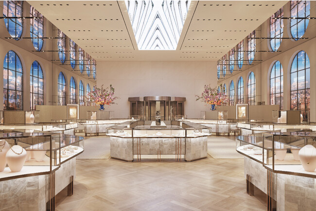 ティファニーにとって、1940年にNY本店が五番街に移転して以来、初の全面改装となります。伝統と革新、過去と未来など、相反する力がこの変貌を特徴づけています。元々のアイコニックな建造物やアトラスクロックが設置されたファサードのデザインはそのままに、新たに再解釈された店内空間には、まったく新しい夢のような創造性あふれる世界が広がっています。