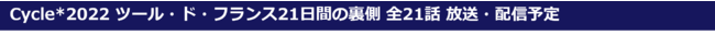 「Cycle*2022 ツール・ド・フランス21日間の裏側」は、8月27日(土)よりブエルタ・ア・エスパーニャ各ステージの中継前に放送、配信します。そのとき何が起きていたのか、ツール・ド・フランスの裏側に迫る番組をブエルタ・ア・エスパーニャ中継と合わせてお楽しみください。