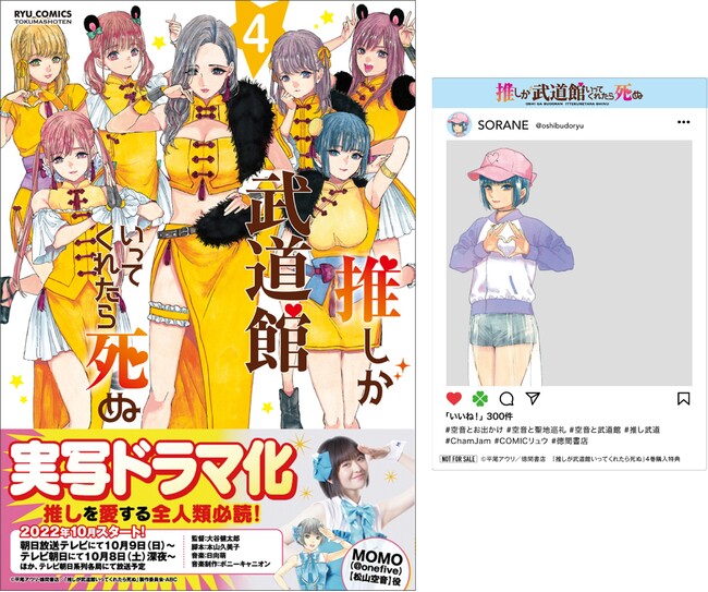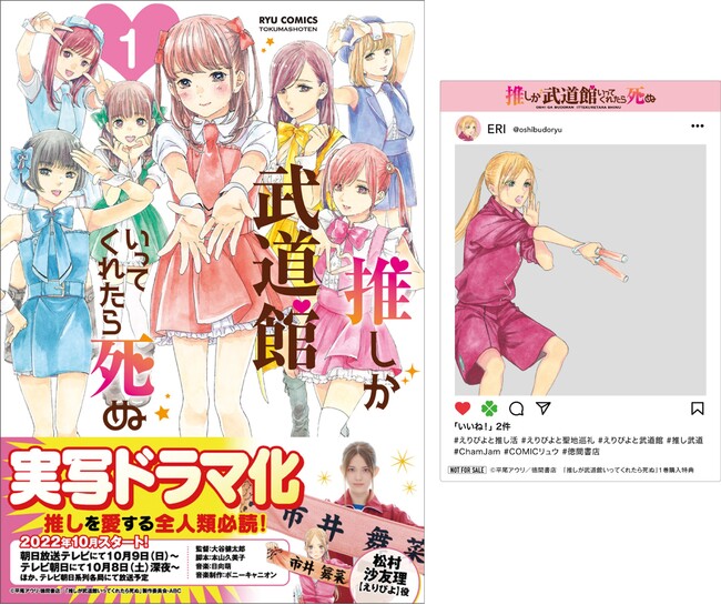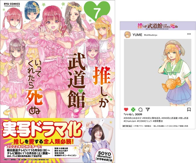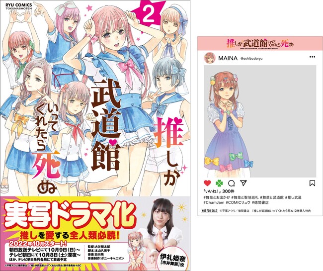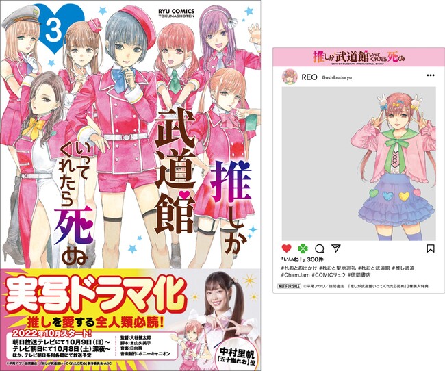 株式会社徳間書店は、実写ドラマ化を記念して、原作『推しが武道館いってくれたら死ぬ』の購入者特典【SNS風クリアカード】の画像をTwitterに投稿いただいた方の中から抽選で、複製原画が当たるキャンペーンを2022年10月3日(月)より実施いたします。