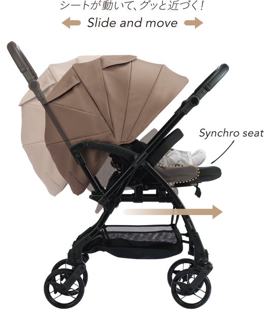 ~日本初!(※1) シートが動いて赤ちゃんにすぐに触れられるベビーカー~
