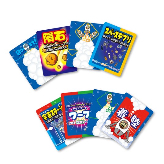 ●商品内容:カード60枚(ロケットカード44枚、イベントカード9枚、着陸カード4枚、予備カード3枚)、プレイシート1枚