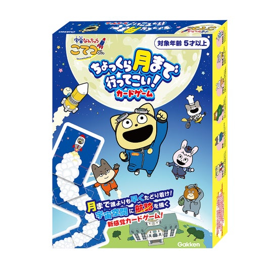 学研ステイフルのカードゲームとして、新たに『ちょっくら月まで行ってこい!カードゲーム』が登場!人気アニメ『宇宙なんちゃら こてつくん』とコラボし、作中でもキーワードとなる「ちょっくら月まで行ってこい!」のセリフそのままに、月に一番早くにたどり着いた人が勝ちとなる新感覚カードゲームです。