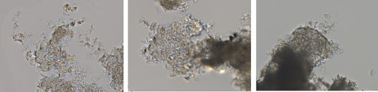 ヒトの角質に添加 左から「白花豆」・「ヨクイニン」・「精製水」暗い部分は角質が固まっている部分 暗い部分が少ないほど角質がほぐされている。
