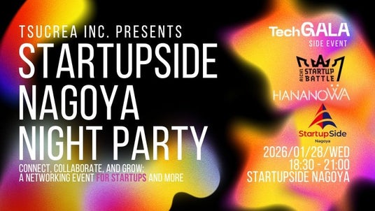 株式会社ツクリエ(本社:東京都千代田区 代表取締役:鈴木英樹 以下、ツクリエ)が運営するインキュベーション施設「StartupSide Nagoya(以下、SSN)」は、2026年1月27日(火)~29日(木)に愛知県名古屋市で開催されるテクノロジーの祭典『TechGALA』のコミュニティサポーターに、昨年に続き今年も認定されました。2026年1月28日(水)には業界業種にこだわらず、新進気鋭のシード・アーリーステージのスタートアップ企業が集まる交流会「StartupSide Nagoya Night Party」をTechGALAサイドイベントとして開催します。