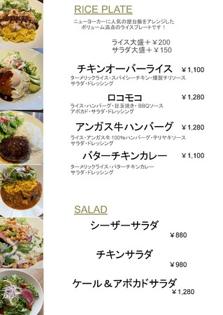 ご家族でもゆっくりと過ごせる広々とした店内になっており、メニューもピザやハンバーグ、チキンオーバーライスなどのライスプレートも多数!お子様向けにキッズメニューもご用意しております!