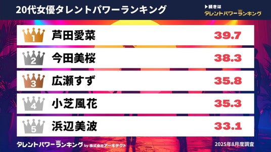 『タレントパワーランキング』ではタレントパワーランキングに登録されている、2026年1月1日時点で年齢が20代の女優について、パワースコアを調査。