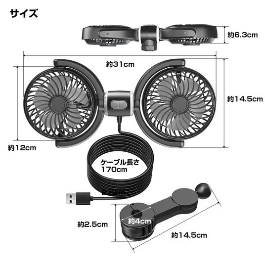 MAXWIN K-FAN16別々に風力、風向き調整できる後部座席用車載ファン。