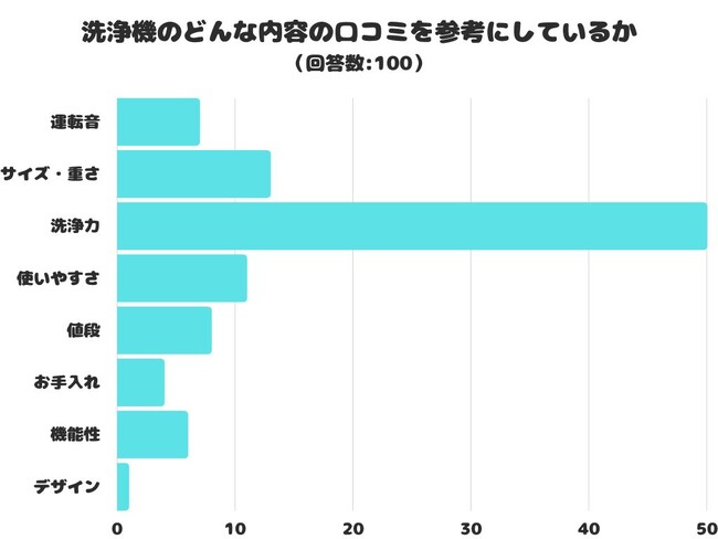 100人にアンケートを行ったところ、「洗浄力」と回答したのは全体の50.0%でした。