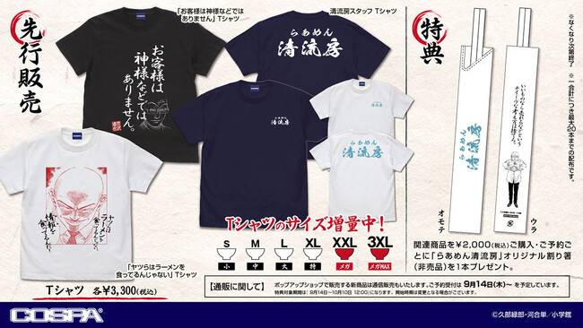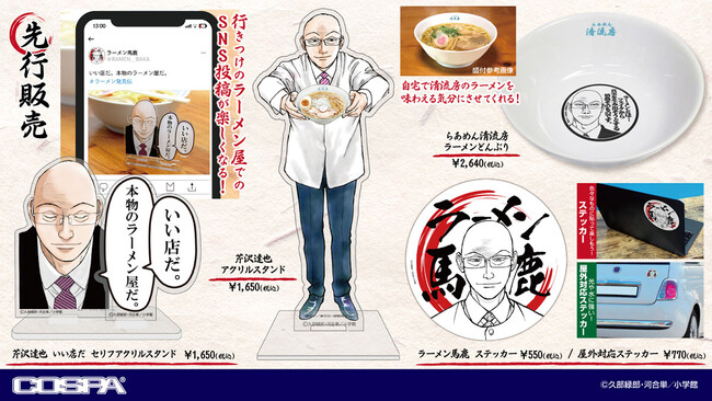 また、「芹沢達也」名言Tシャツやアクスタ、らあめん清流房のどんぶりなど、先行販売される
