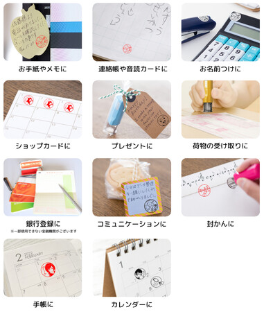 荷物の受け取りやメモなどへのサイン替わり、持ちものへのお名前つけ、お子さまの連絡帳や音読カードなどにポンポン押せるセルフインクタイプ、全国ほとんどの金融機関にも登録できる木彫りタイプ、黒水牛タイプから選べます。