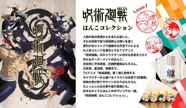 インターネットのはんこ屋さん「印鑑はんこSHOPハンコズ」を運営する株式会社岡田商会(所在地:大阪府大阪市、店長:岡山耕二郎)は自社オンラインショップにて、人気TVアニメ「呪術廻戦」のキャラクター入りはんこ「呪術廻戦 はんこコレクション」の予約受付を開始いたしました。