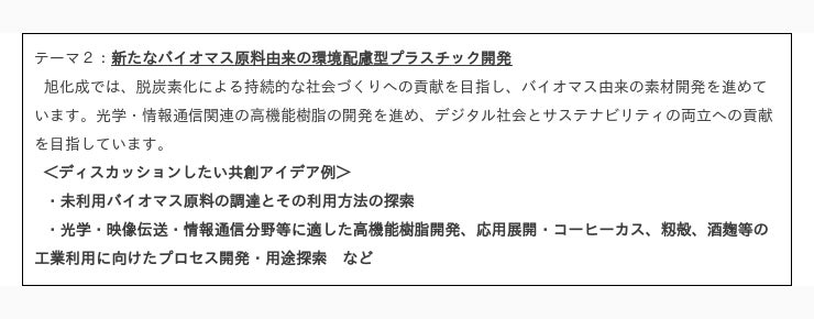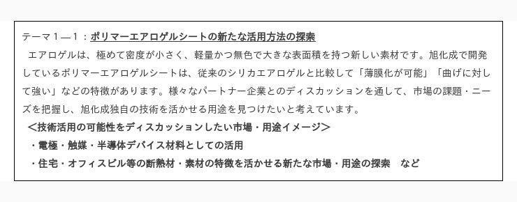 旭化成の研究開発部門が展開する、昨年に続く2期目のプログラムとなります。