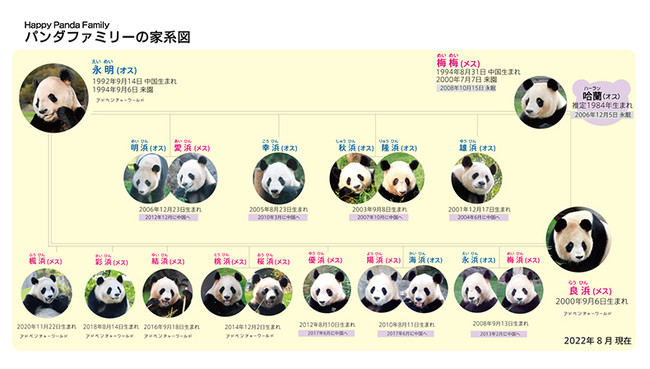 8月から12月にかけてパンダファミリー7頭が誕生日を迎えます。9月からは「HAPPY PANDA FES 2022」と題し、誕生会や収穫祭など、パークやオンラインで参加・体験型イベントの連続開催を予定しています。