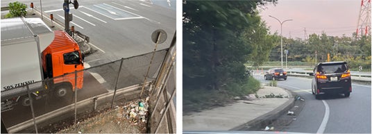 除草が行き届いているきれいな道路沿いには、比較的ごみは少ない。信号待ち等駐停車エリアには車両が滞留しやすく、ポイ捨てが増える傾向にありました。また、暗く人目に付きにくい、道路合流部などには多くのごみが捨てられていました。