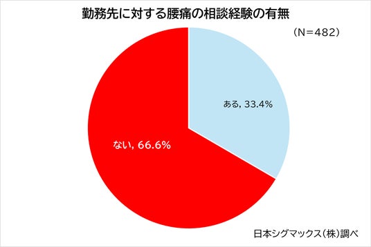 製造業で働く人のうち、勤務先への腰痛の相談について、半数以上の66.6%が「相談したことが無い」と回答し、相談しなかった理由として、「我慢(41.7%)」、「腰痛を長年抱えているから(31.5%)」、「何もしてくれないと思うから(26.5%)」が順に挙げられました。