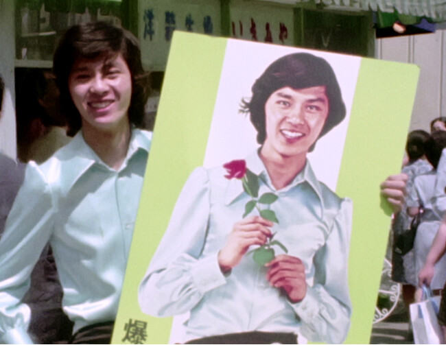 西城秀樹が新曲「恋する季節」キャンペーンで高田馬場のレコード店前で歌う。