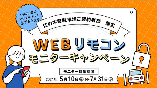 本格導入を前に、2024年5月10日より江の木町駐車場(運営・管理:阪神高速サービス、所在地:大阪府吹田市江の木町33)の契約者を対象に、モニターキャンペーンを開始しました。本キャンペーンでは、顧客体験、駐車場管理会社の運用オペレーションの確認および全国の駐車場での運用に備えた「WEBリモコン」の改善を目的としています。