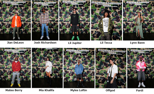 ファッションショーでは、メインブランドである「A BATHING APE(R)」はもちろんのこと「AAPE(エー・エイプ)」や「BAPE(R) BLACK(ベイプ・ブラック)」、「BAPY(ベイピー)」、「APEE(エイピー)」も加わり、計100以上のルックが発表されました。スペシャルゲストとしてアーティストのLil Baby(リル・ベイビー)と、NBAプレイヤーのJalen Green(ジェイレン・グリーン)がランウェイに登場。