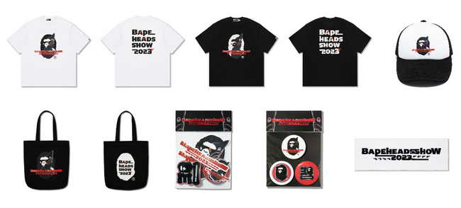 また、BAPE HEADS SHOWの開催を記念して、クラシックな “APE HEAD” ロゴ、アーティスティックな “シャーク星人”、そしてBAPE HEADS SHOW 2023のタイポグラフィーという3つのアイコニックな要素を組み合わせた限定コレクションを発売。Tシャツ、ベースボールキャップ、トートバッグ、タオル、ステッカーセット、記念バッジの全6アイテムを、2023年7月1日(土)に全国のBAPE STORE(R)及びオンラインストア(https://bape.com/)にて発売いたします。