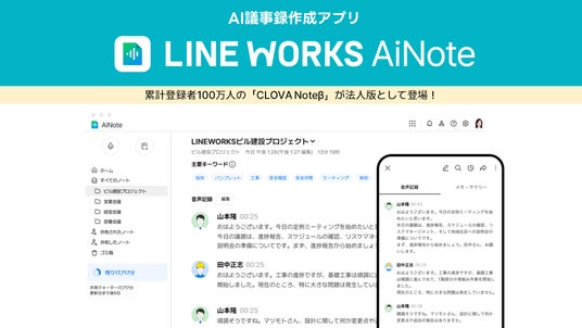 ビジネス現場のコミュニケーションツール「LINE WORKS」や各種AI製品を提供するLINE WORKS株式会社(本社:東京都渋谷区、代表取締役社長:島岡 岳史)は、「LINE WORKS AiNote」と「LINE WORKSラジャー」が国土交通省の新技術情報提供データベースシステム「NETIS(New Technology Information System)」の「LINE WORKS」に追加されたことをお知らせします。また、建設DXの加速に貢献するために、建設業向けセットプランの提供を5月頃に開始します。